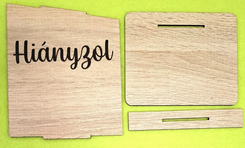 Nyomtatott lapra szerelt barna deszkás háttér, Hiányzol felirattal 1szett 12x14,5 cm talp méret 12x10 cm vastagság 2,5mm