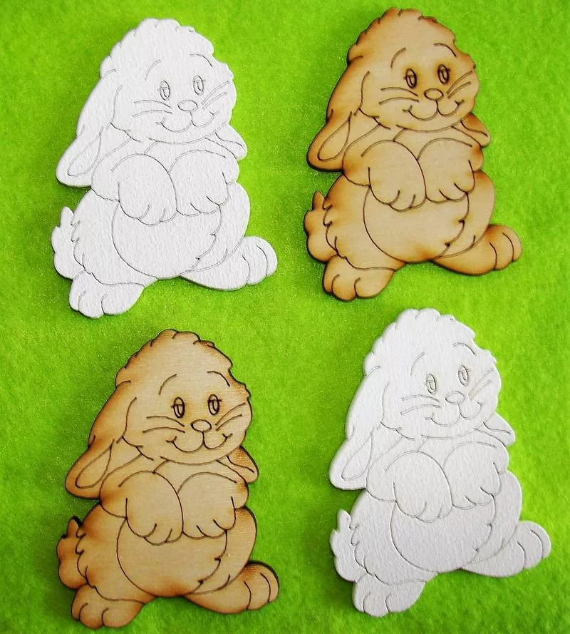 Vegyes színű fa Angóra nyuszi 4db/csomag 6x8cm