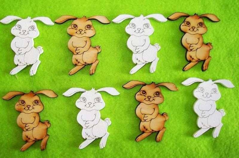 Vegyes színű fa Ugrálós nyuszi 8db/csomag 5,5x6cm