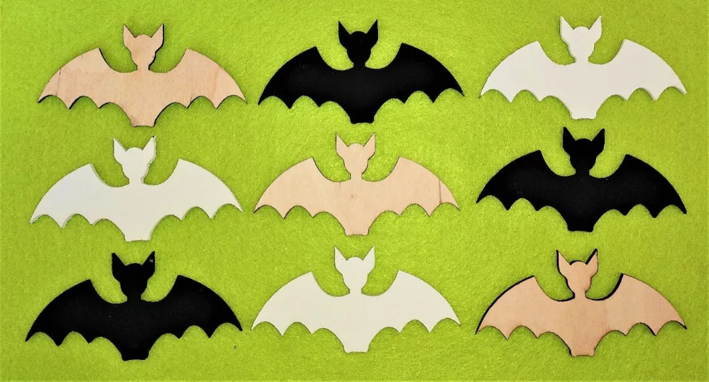 Vegyes színű fa denevér 10x5cm 9db/csomag