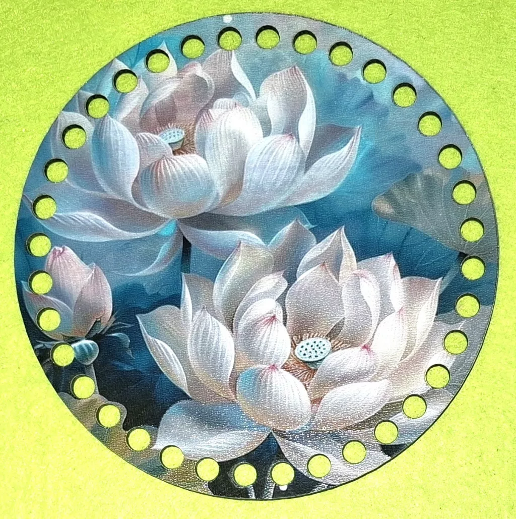 15cm Horgolható nyomtatott fa alap 7 mm lyukkal Tavirózsás 1db 15cm vastagság 2,5mm