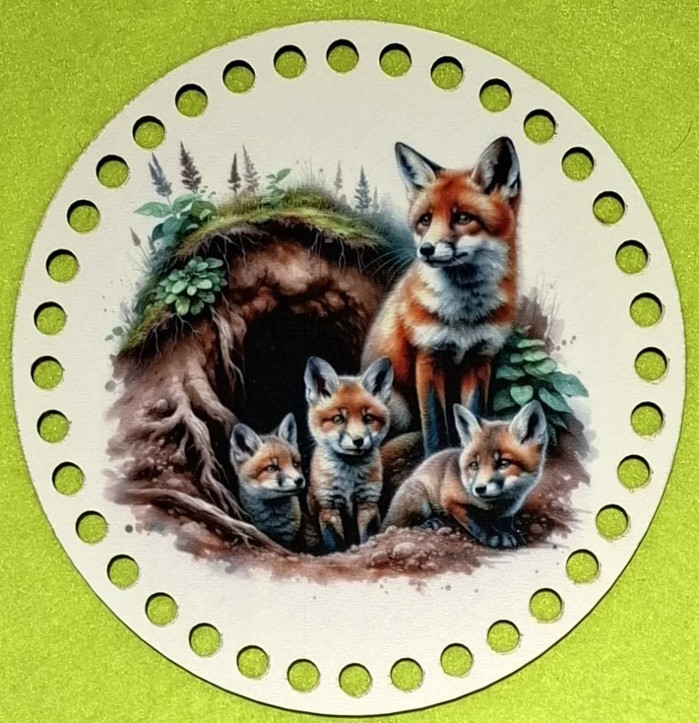 15cm Horgolható nyomtatott fa alap Róka család 7mm lyukkal 1db 15cm vastagság 2,5mm