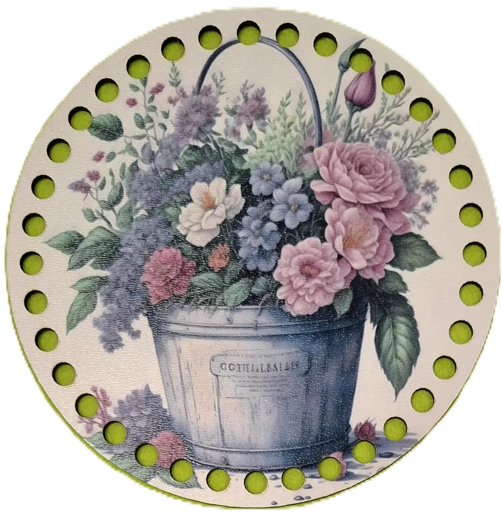 15cm Horgolható nyomtatott fa alap 7 mm lyukkal Fém vödörbe virág csokor felirattal 1db/csomag 15cm vastagság 3mm