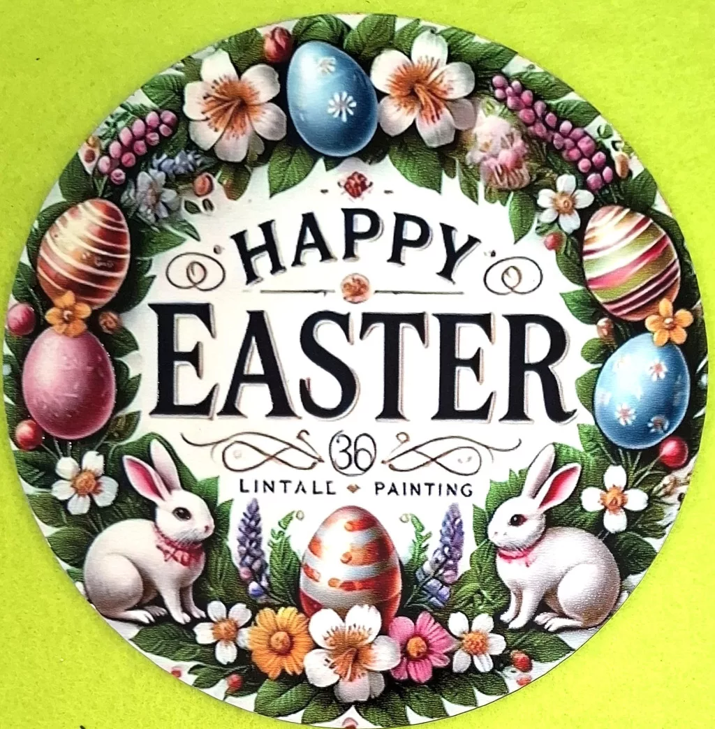 Nyomtatott kerek kopogtató közép Nyuszkó színes virágokkal 1db 15cm vastagság 2,5mm