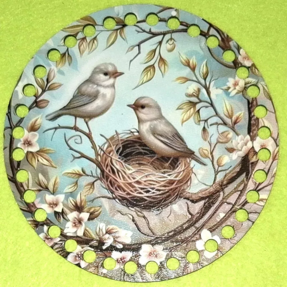 19,5cm Horgolható nyomtatott fa alap 7 mm lyukkal Madár pár fészekkel 1db 19,5cm vastagság 2,5mm