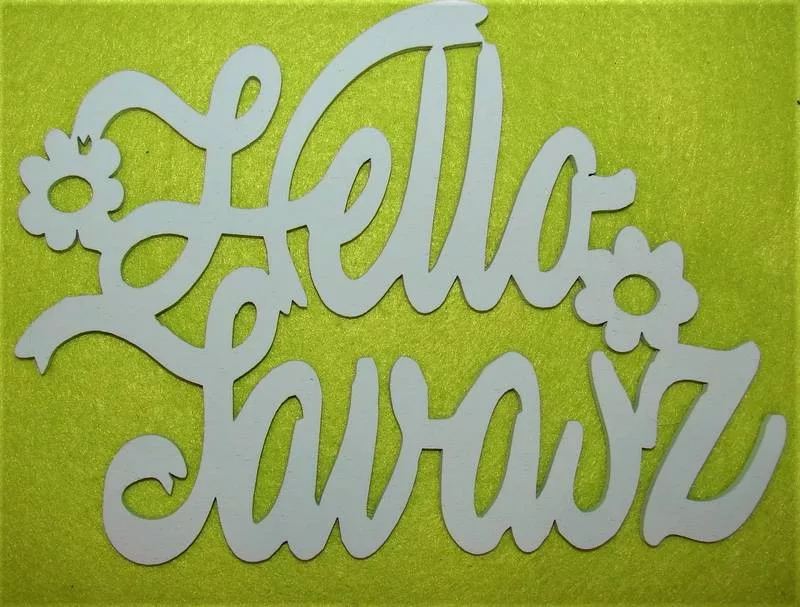 Világoskék fa Hello tavasz 1db 14,5x20cm vastagság 3mm