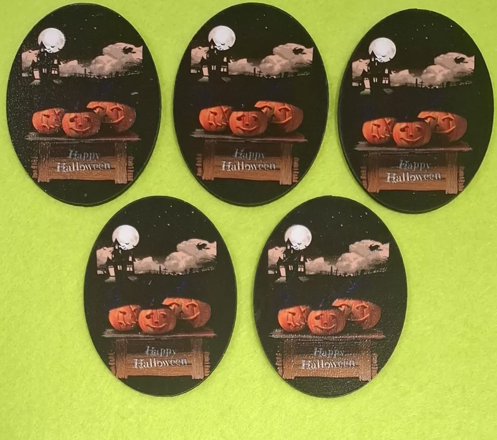 7cm Ovális Nyomtatott fa tábla Happy halloween 3db tökkel 5db/csomag