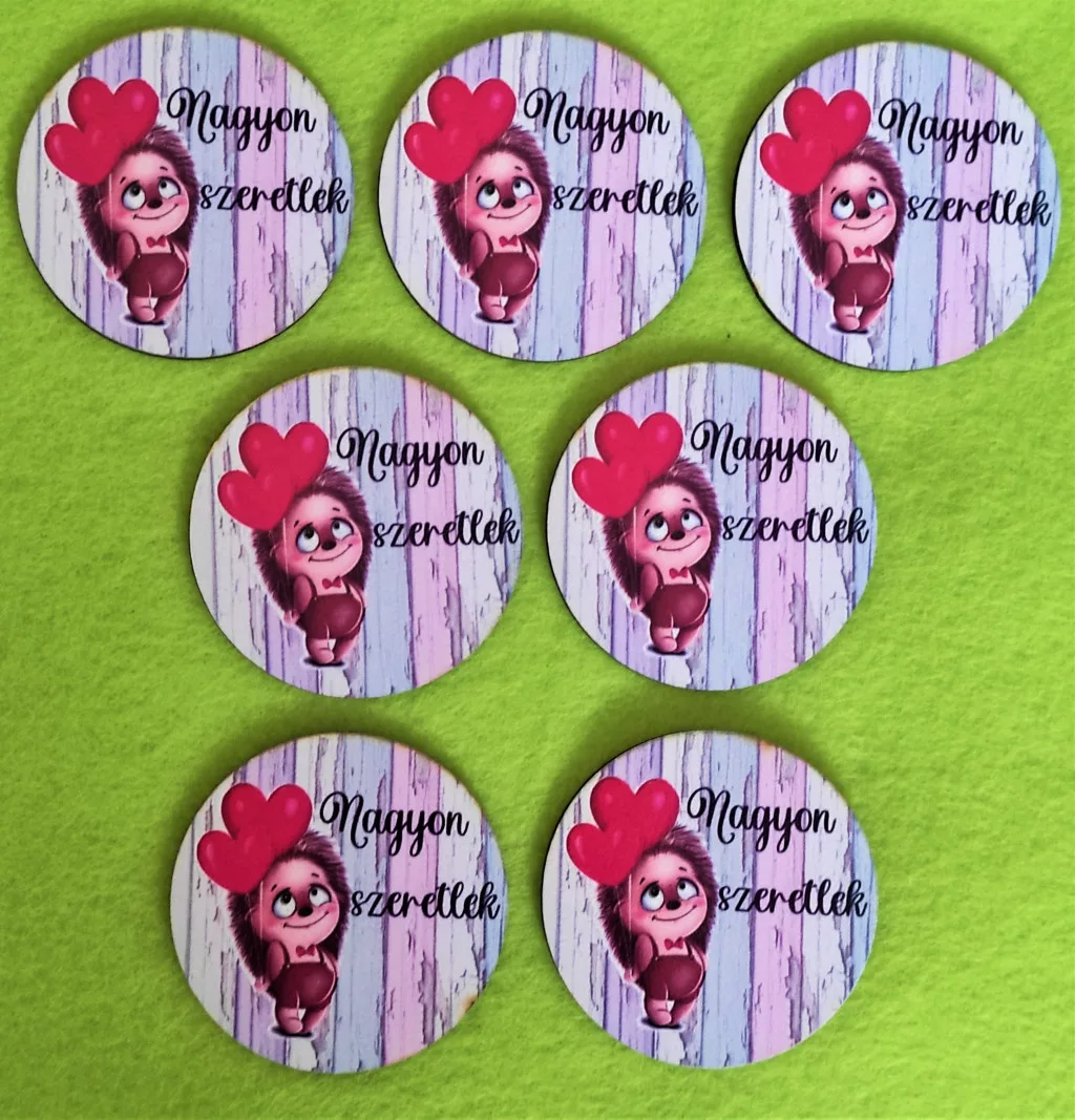 5cm kör Nyomtatott fa Süni szíves lufival Nagyon szeretlek felirattal 7db/csomag