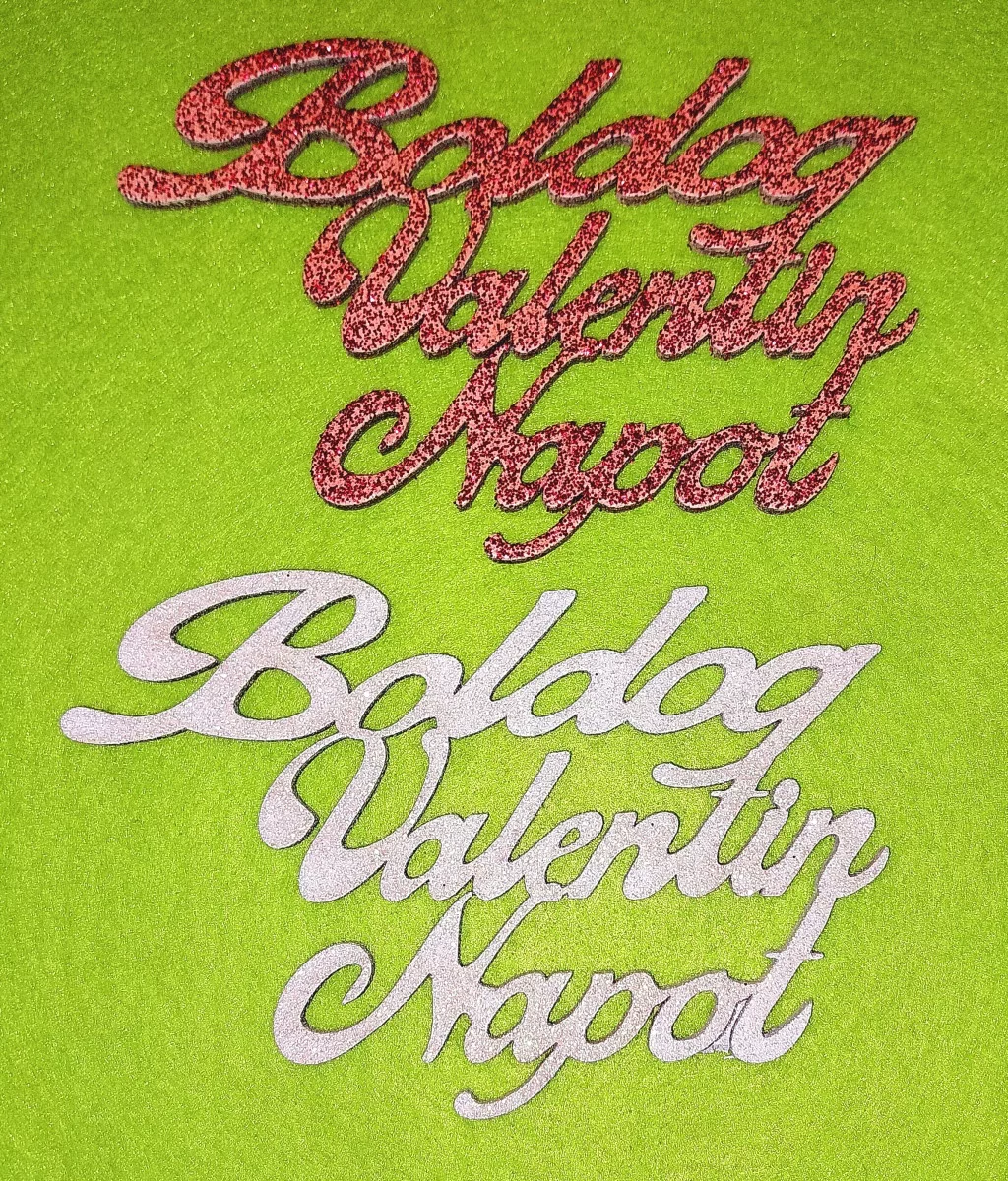 Piros és fehér csillámos fa boldog valentin napot 2db/csomag 15x8cm