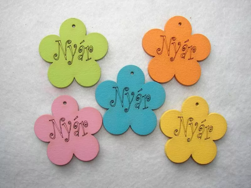 Vegyes színű fa Margaréta Nyár felirattal 5db/csomag 5x5cm