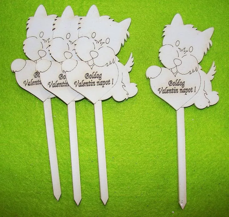 Fehér fa Beszúrós kutyus Boldog Valentin napot ! felirattal 4 db/csomag 17x9cm
