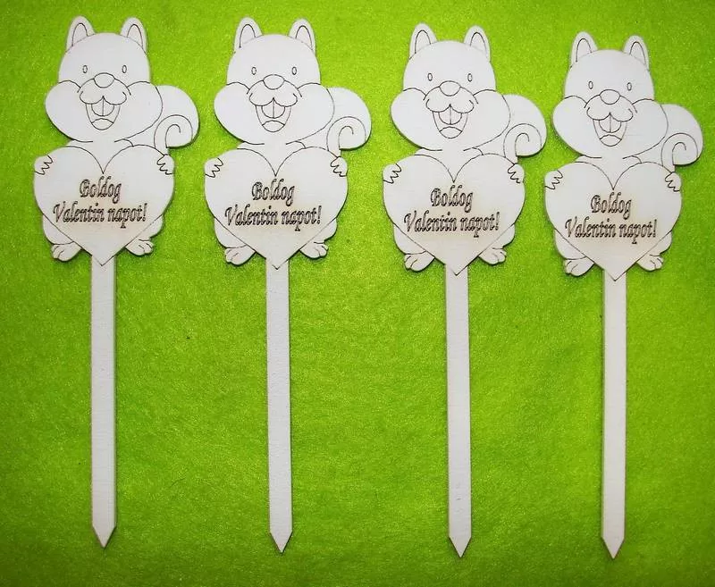 Fehér fa Beszúrós mókus Boldog Valentin ! felirattal 4 db/csomag 17x9