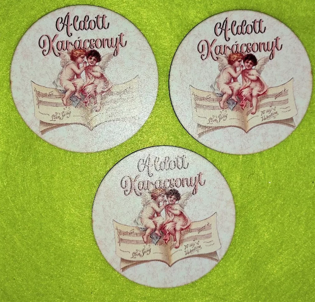 8cm kerek Nyomtatott fa Áldott Karácsonyt ovál tábla Anygyalkás 3db/csomag