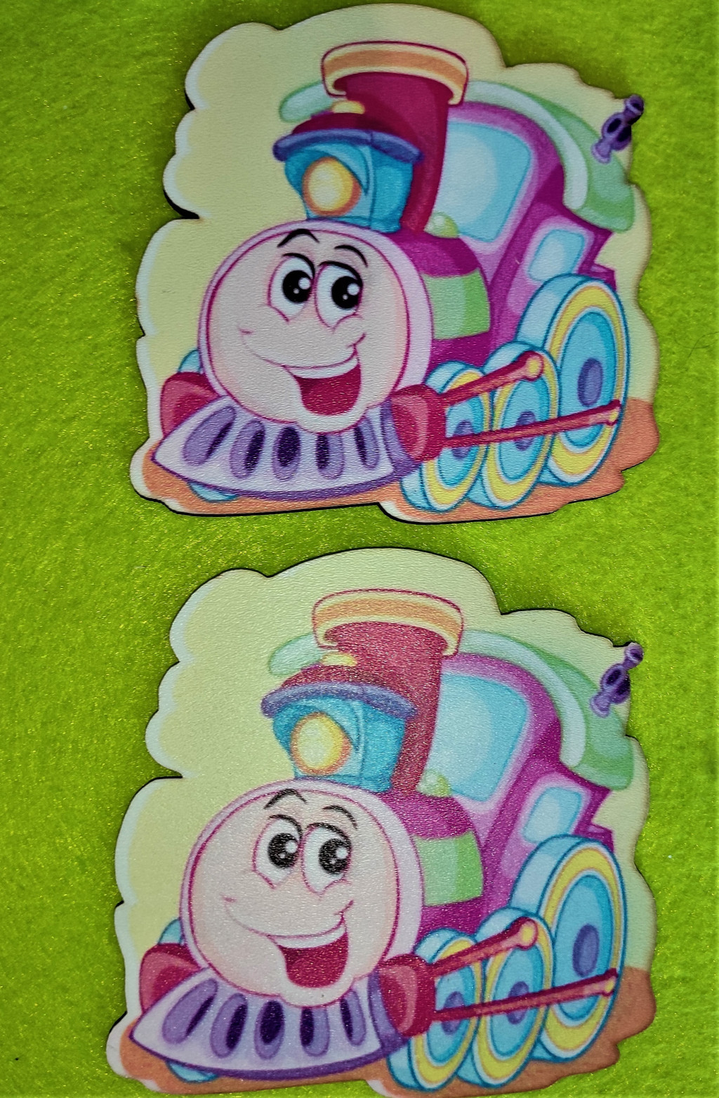 Nyomtatott fa Aranyos vonat nagy szemekkel 2db/csomag 10x10cm