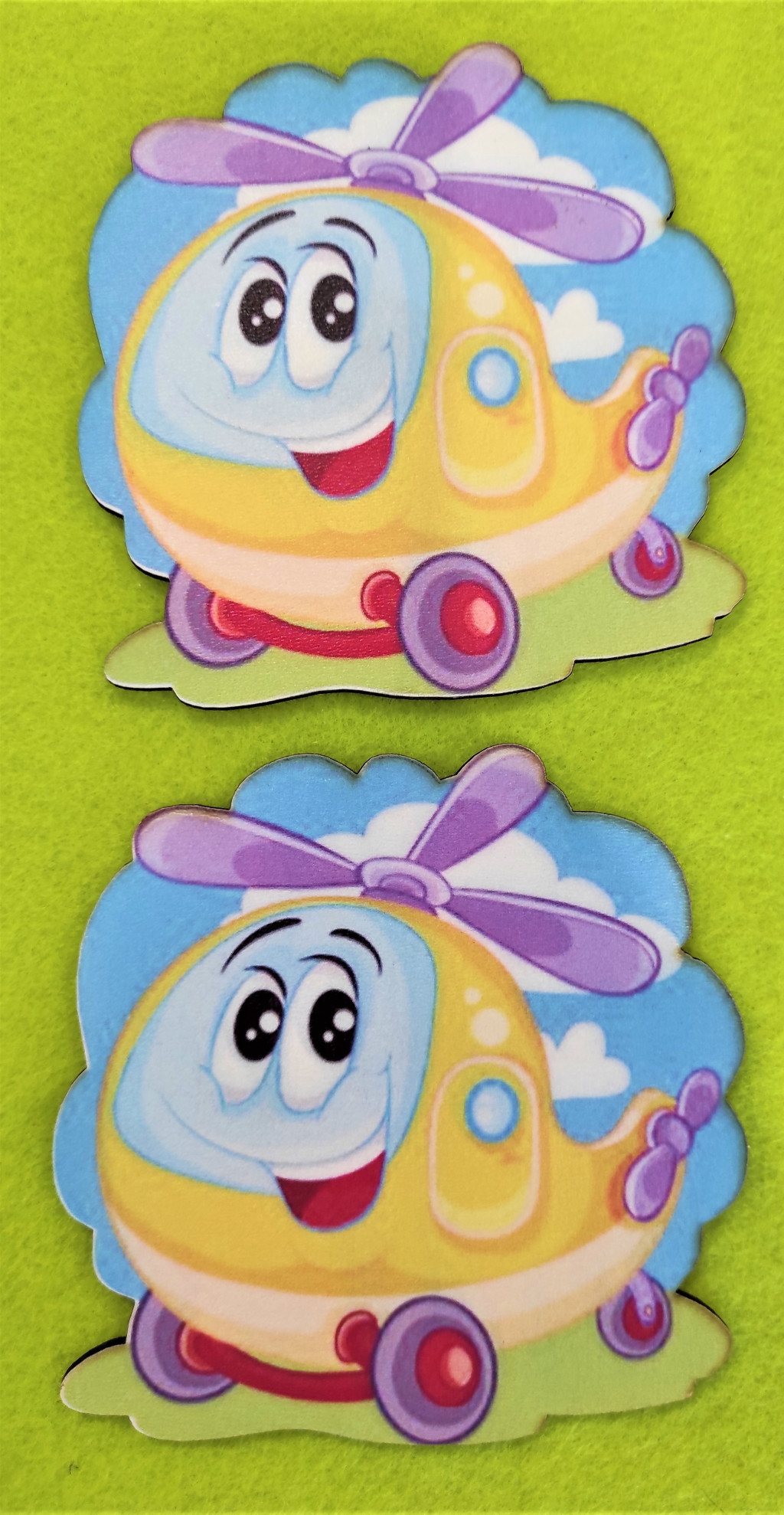 Nyomtatott fa Aranyos Helikopter nagy szemekkel 2db/csomag 10x10cm