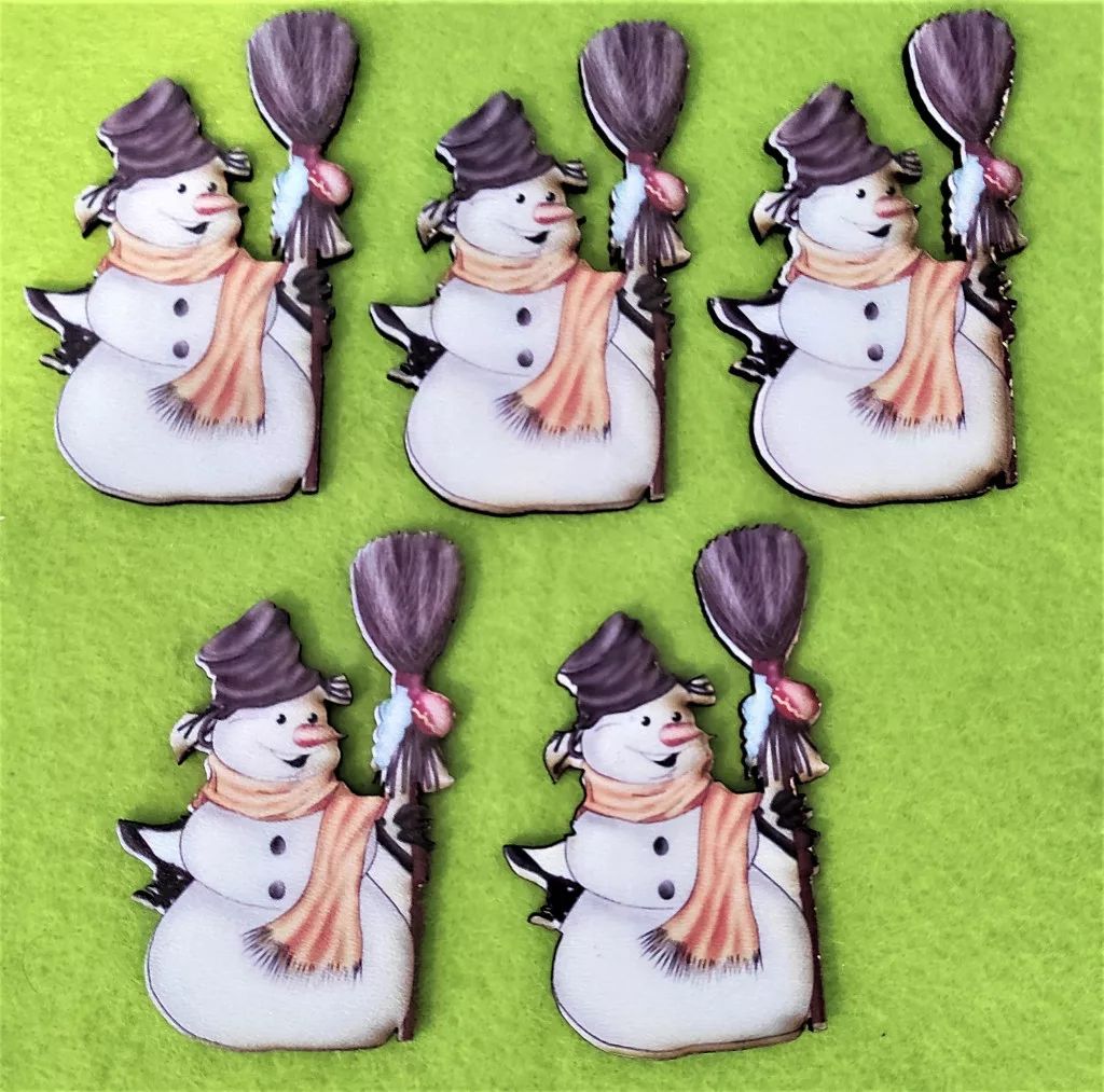 Nyomtatott fa Hóember sárga sállal fekete seprűvel 5db/csomag 8x5cm