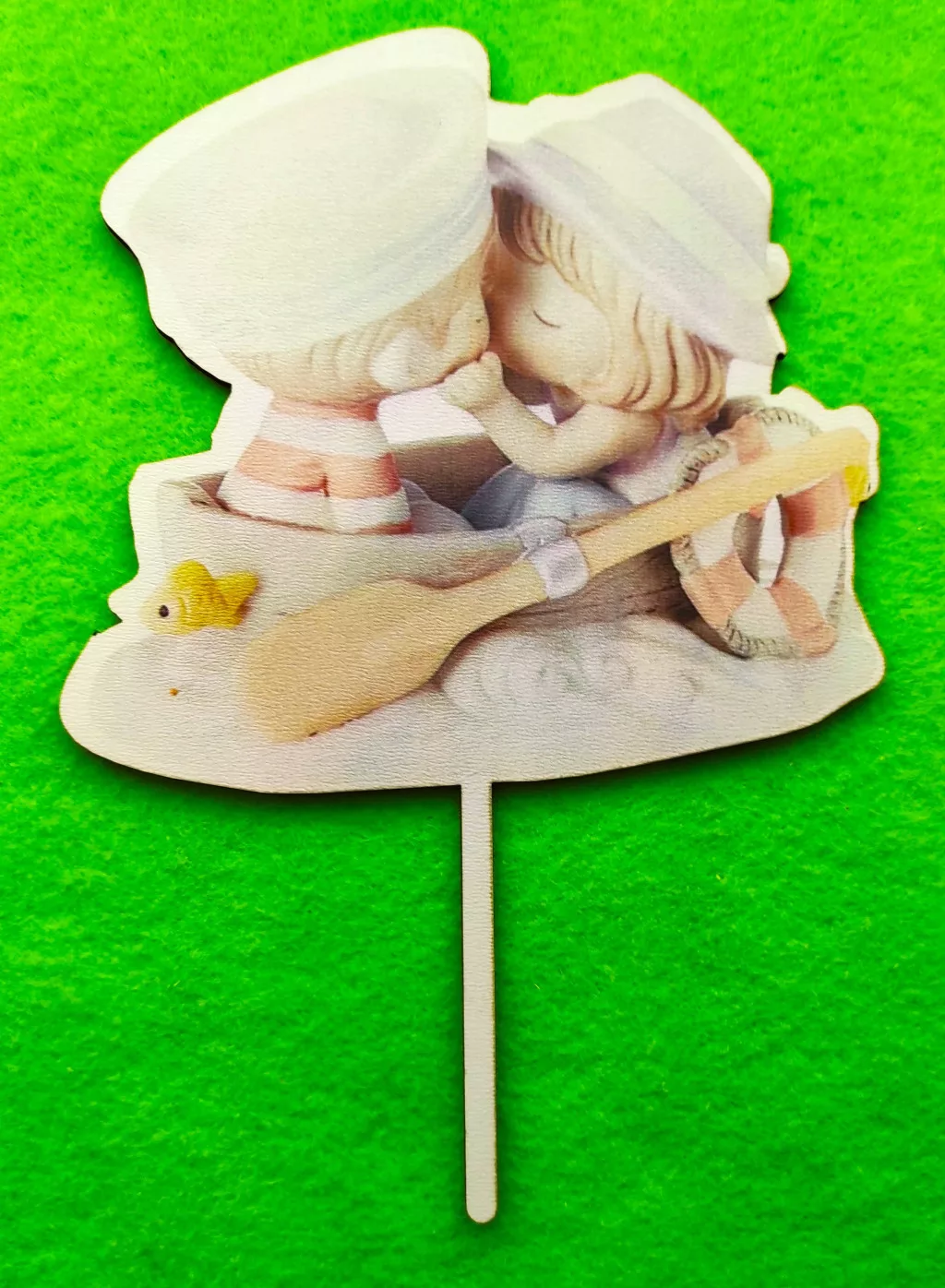 Nyomtatott fa beszúrós dísz Csónakban üllő pár 1db 12x18cm
