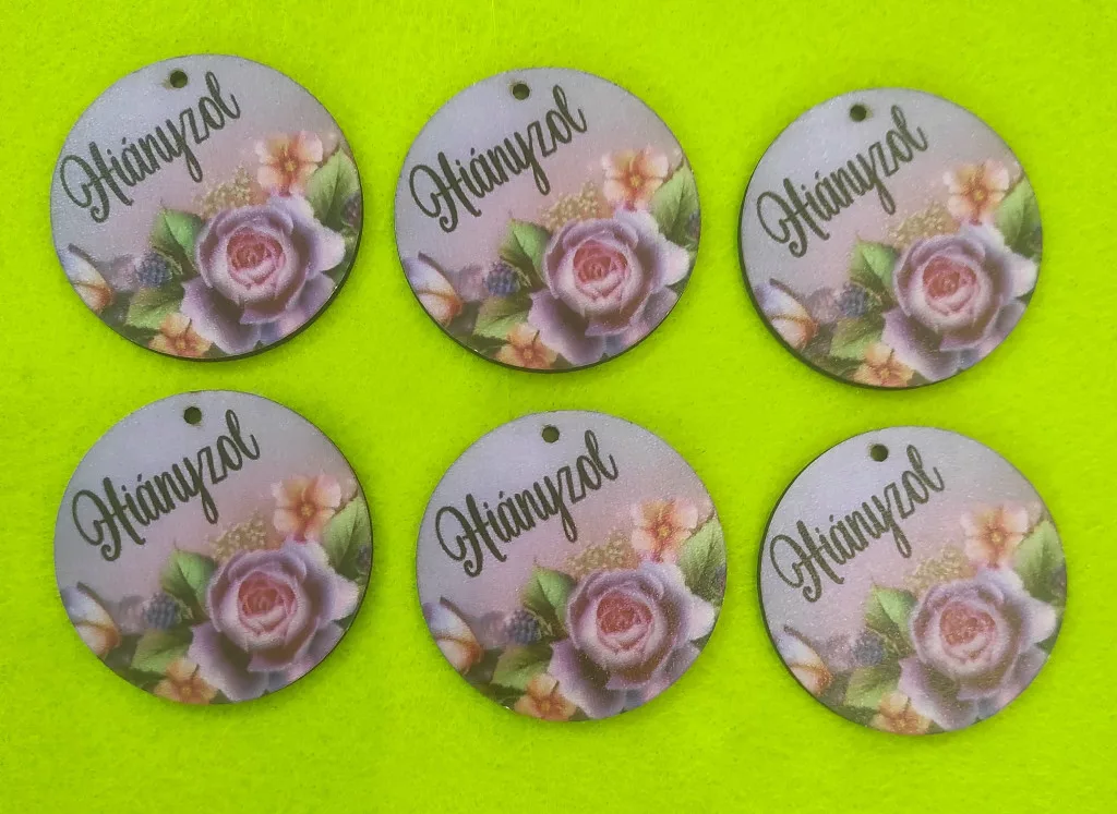 Nyomtatott fa Kör lila háttér Hiányzol felirattal 6db/csomag 5cm
