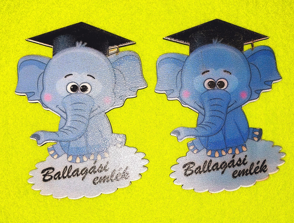 Nyomtatott Fa Ballagó Elefánt Ballagási emlék felirattal 2db/csomag 7x9,5cm