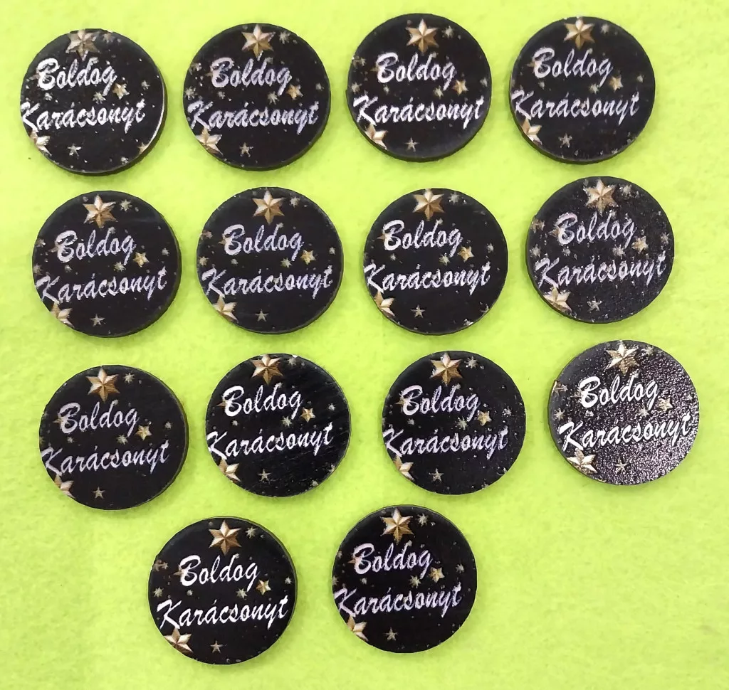 Nyomtatott Fa Kicsi Fekete háttérrel Boldog karácsonyt felirattal 14db/csomag 3cm