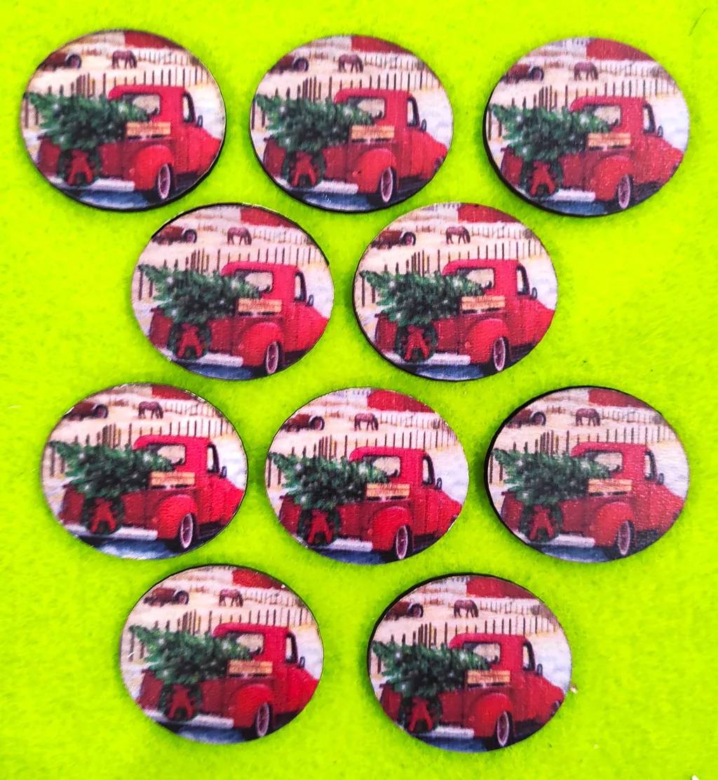 Nyomtatott fa Piros autó fenyőfával 10db/csomag 4x3,5cm