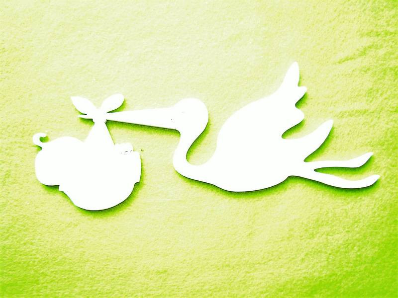 Fehér fa gólya babával 1db/csomag 21x9cm vastagság 3mm
