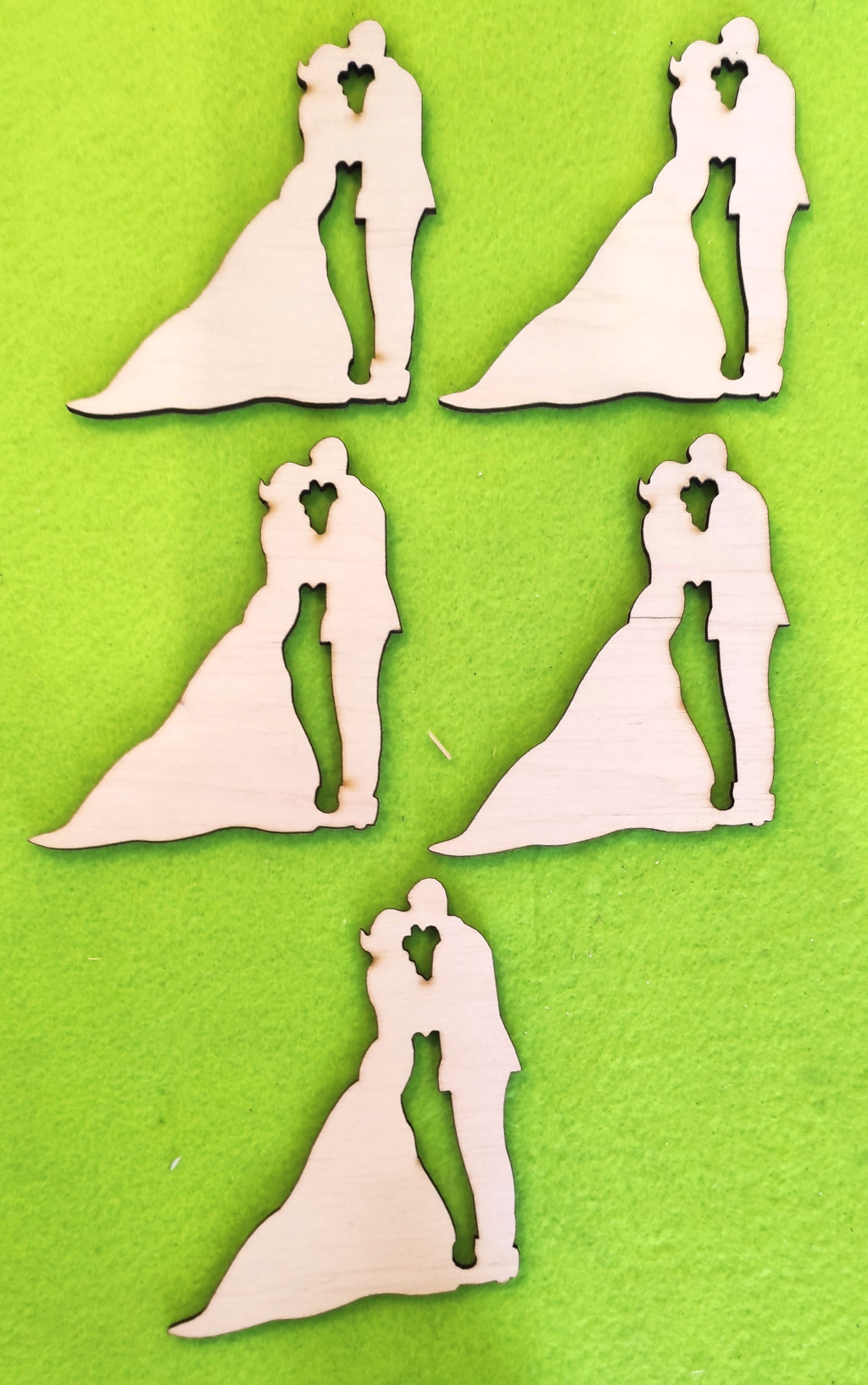 Natúr fa esküvői pár csókolózó 8,5x9,5cm 5db/csomag