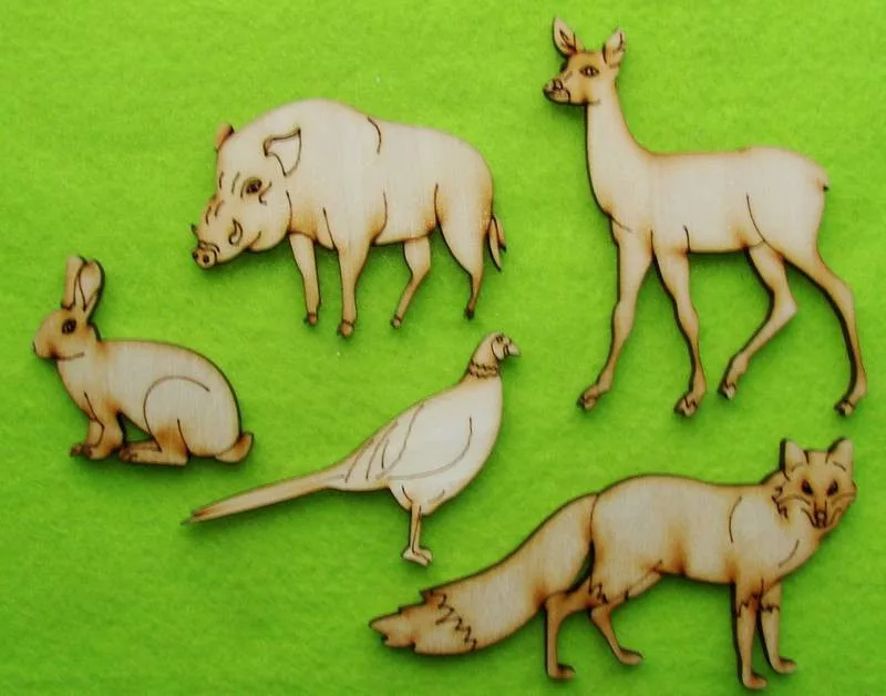Natúr fa Vadász állatok 1 szett őzike8,5x6,5róka 10,5x8,5nyúszi4,5x4vad disznó 6,5x5fácán 7,5x4,5 cm