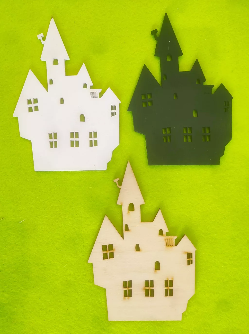 Natúr fehér és fekete fa Ház Görbe kéményes 3db 9,5x14cm