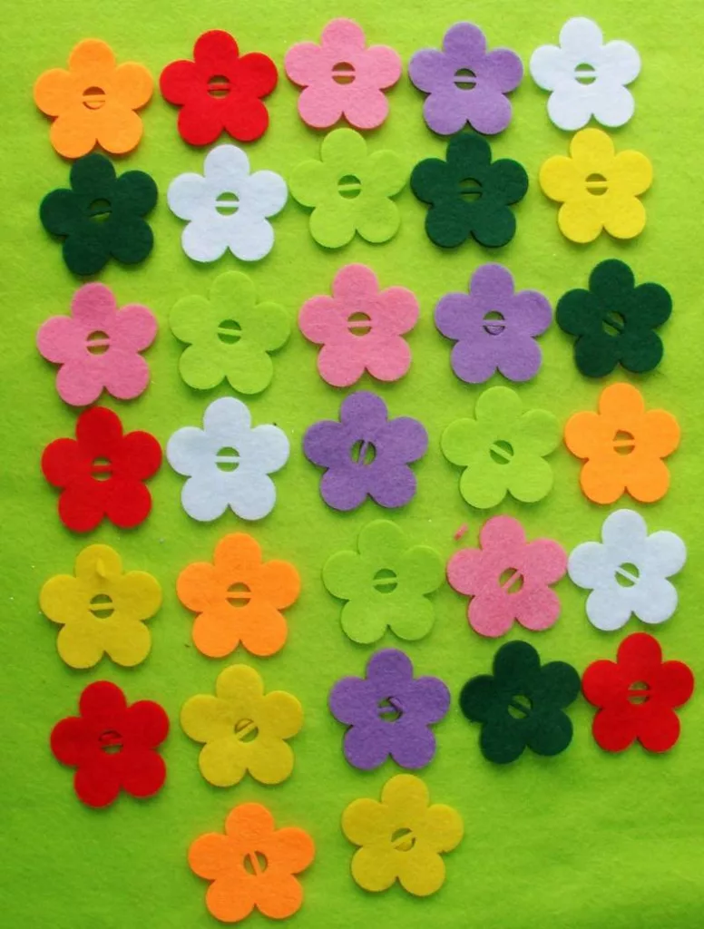 Filc felfűzhető virágok vegyes színekben 5x5cm 32db/csomag