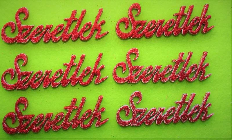 Piros csillámos fa szeretlek 6db/csomag 8x2,7cm vastagság 3mm