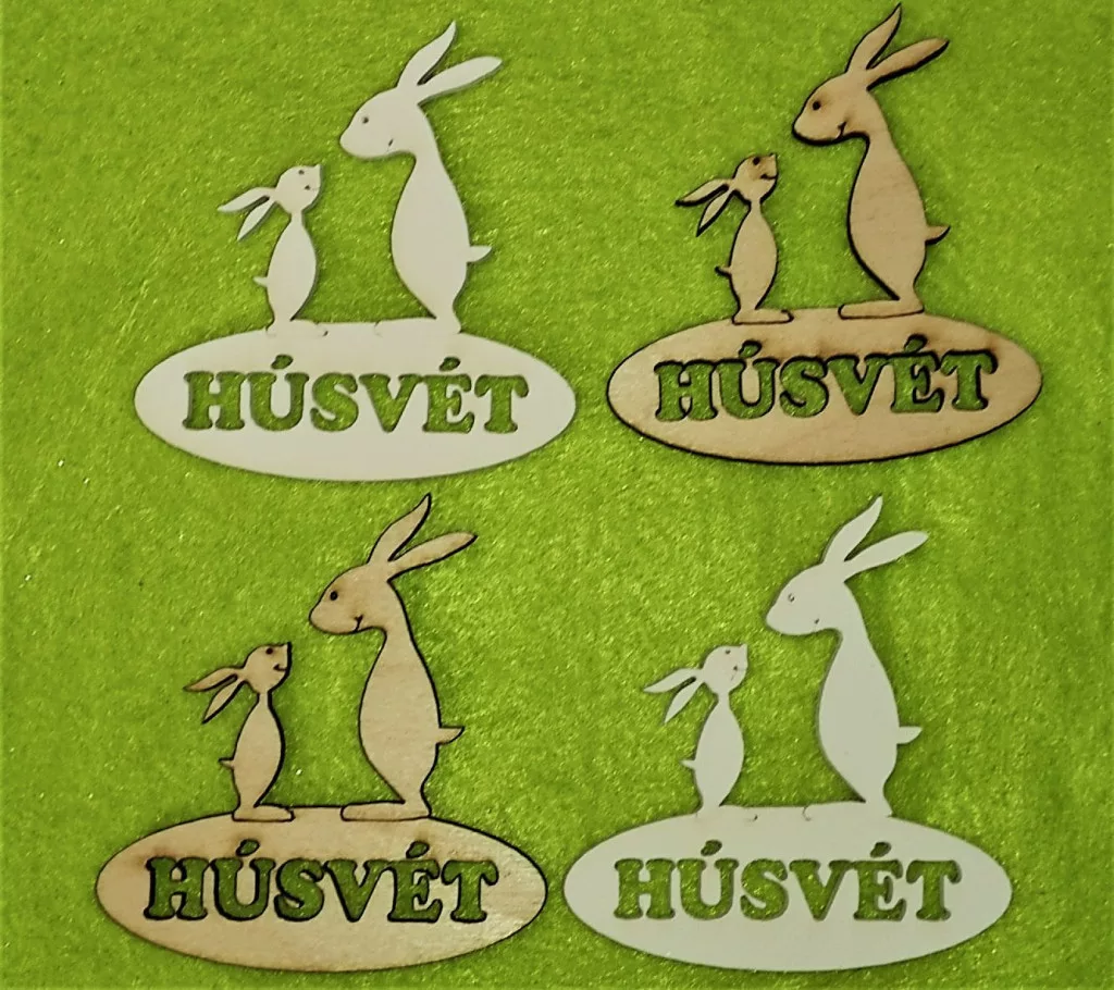 Vegyes színű fa Ovál tábla Nyuszi apa „ Húsvét” 4db/csomag 7x7,5cm