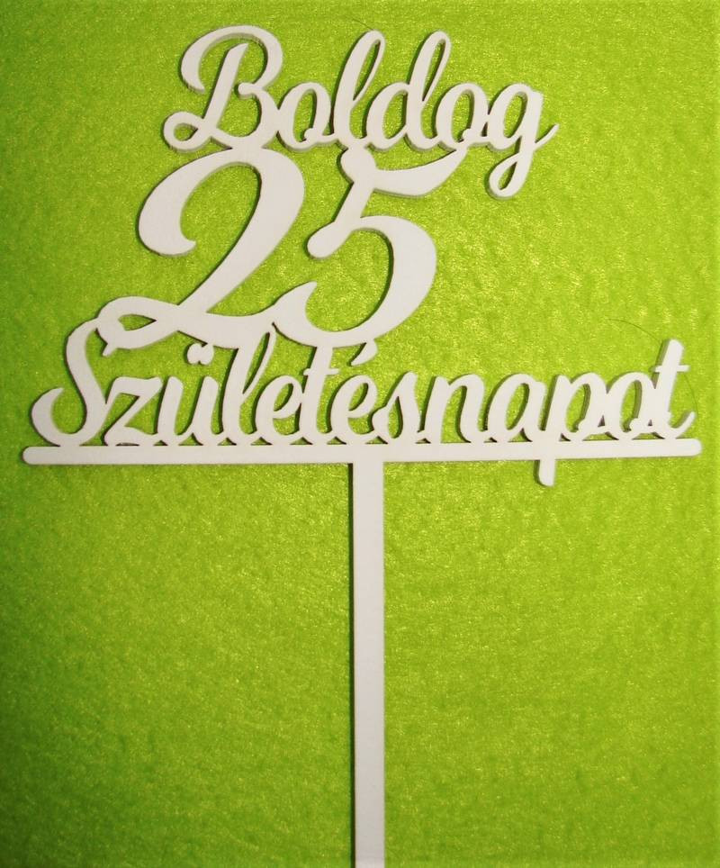 Fehér fa Beszúrós Boldog születésnapot 25-ös 1db 13x17cm