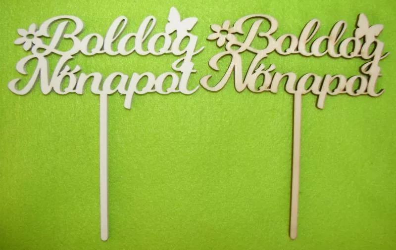 Natúr és fehér fa Beszúrós Boldog nőnapot 2 db/csomag 10,5x125cm