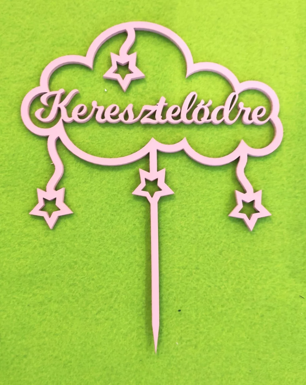Rózsaszín fa Felhőben Keresztelődre felirattal 1db 15x19cm