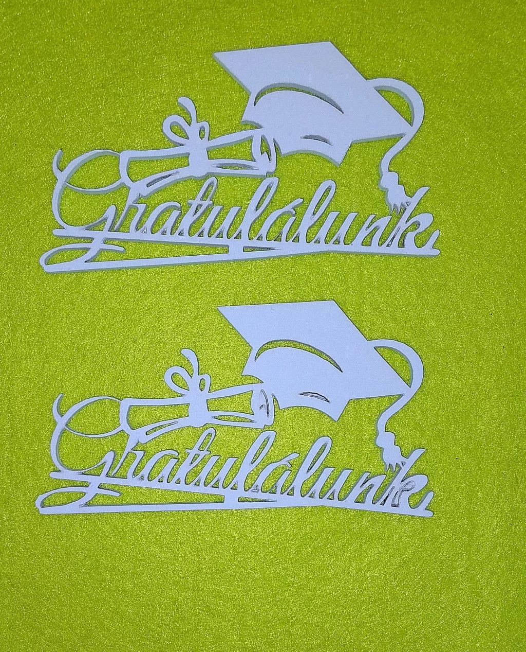 Világoskék fa Ballagási sapkás, Gratulálunk felirattal 2db/csomag 10,5x6,5cm