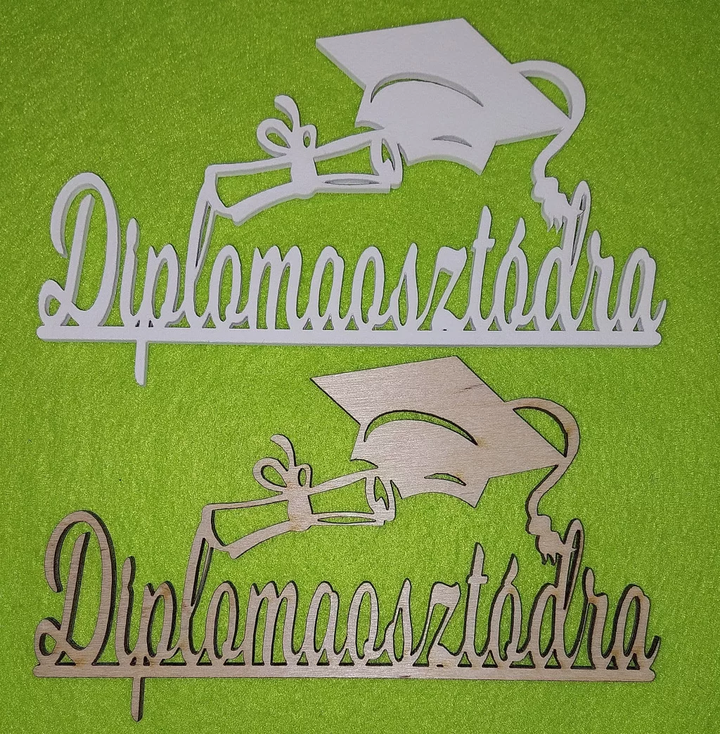 Fehér és natúr fa Ballagási sapkás, Diplomaosztódra felirattal 2db/csomag 13x7,5cm
