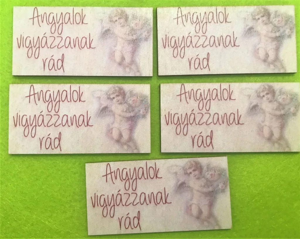 8x4cm Téglalap Nyomtatott fa tábla Angyalok vigyázzanak rád felirattal ,angyalkás 5db/csomag