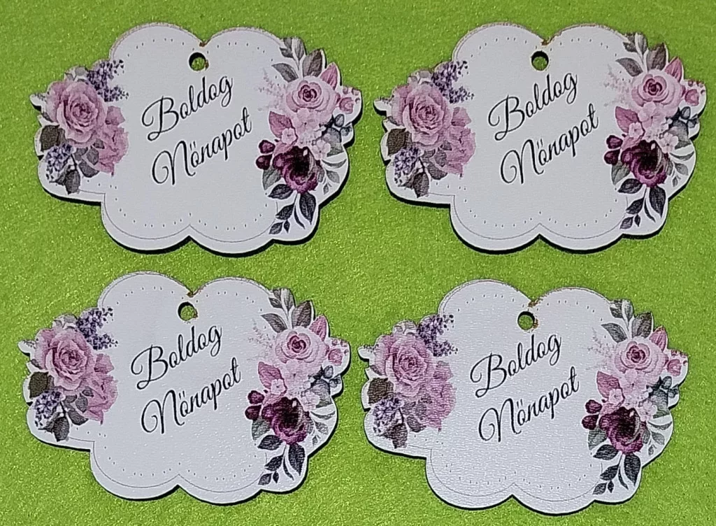7,5x5cm Nyomtatott Boldog Nőnapot tábla kétoldalt virágokkal 4db/csomag