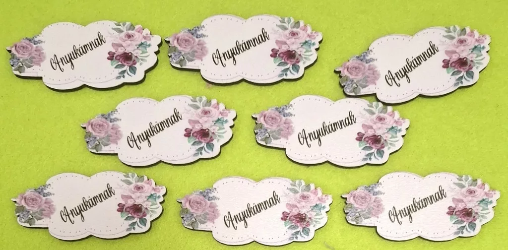 7x3cm Nyomtatott Anyukámnak felirattal kétoldalt virágokkal 8db/csomag