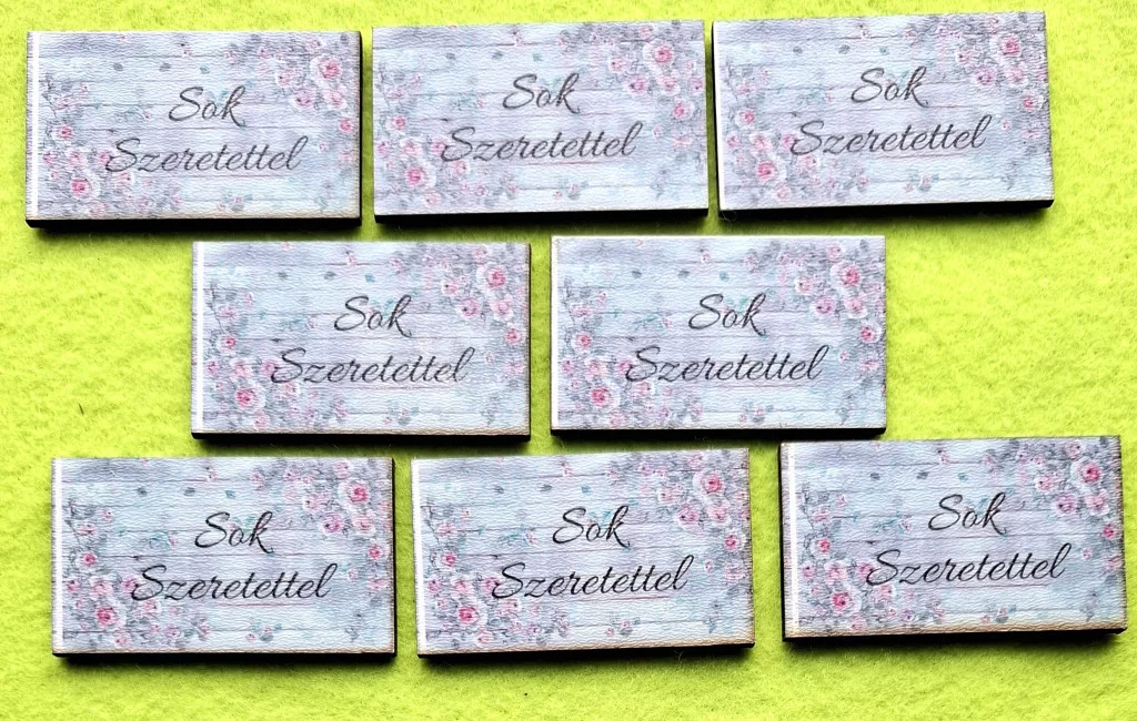 6x3,5 cm Téglalap , nyomtatott fa Deszka háttérrel virágokkal Sok Szeretettel felirattal 8db/csomag