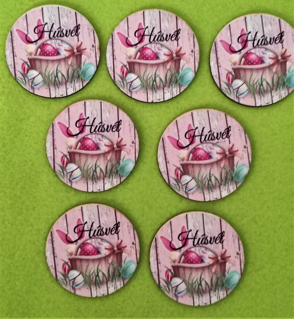5cm kör Nyomtatott fa tojás kosár húsvét felirattal 7db/csomag