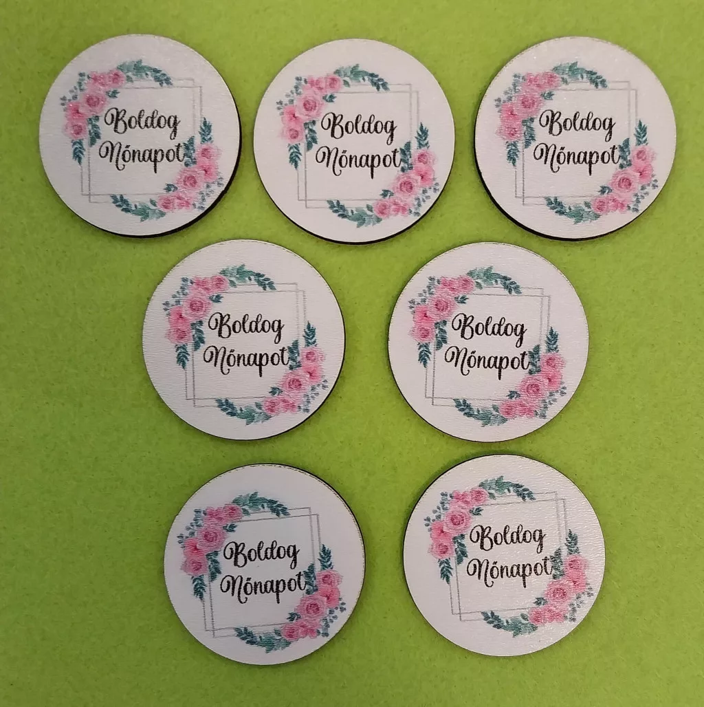 5cm kör Nyomtatott fa Négyzet keretben virágos Boldog Nőnapot felirattal 7db/csomag