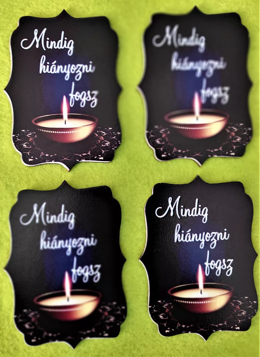 8x 6cm Nyomtatott fa Mindig hiányozni fogsz felirattal fekete háttérrel egy darab mécsessel 4db/csomag