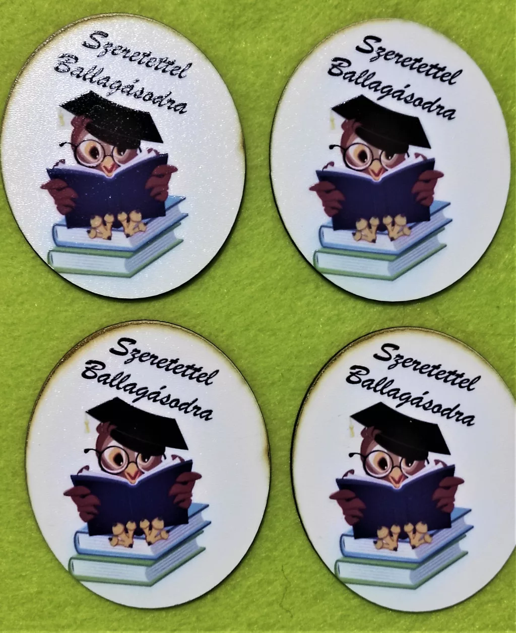 Ovális Nyomtatott fa Könyveken ülő sapkás bagollyal Szeretettel Ballagásodra felirattal