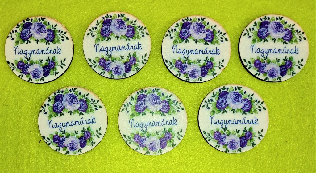 5 cm Kör Lila rózsákkal Nagymamának felirattal 7db/csomag 5cm