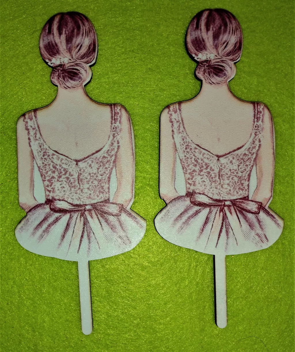 Nyomtatott fa beszúrós dísz Kontyos lány hátulról 2dbcsomag 7x13,5cm