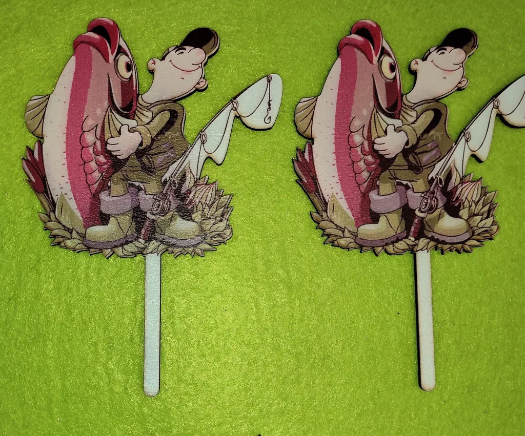 Nyomtatott beszúrós fa Büszke horgász 2db/ csomag 10 x14cm