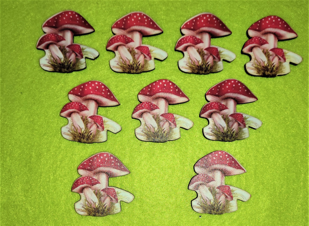 Nyomtatott Fa 3db piros gomba fűvel 10db/csomag 4 x 4 cm