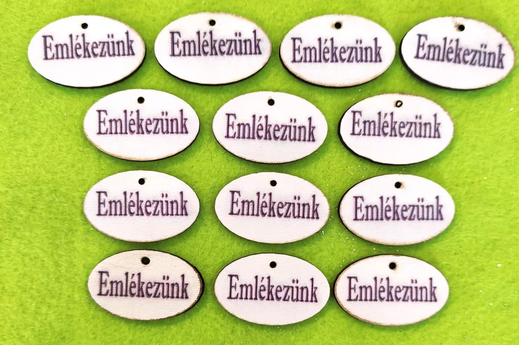 Nyomtatott Fa Ovális tábla Emlékezünk 13db/csomag 4x2,5 cm